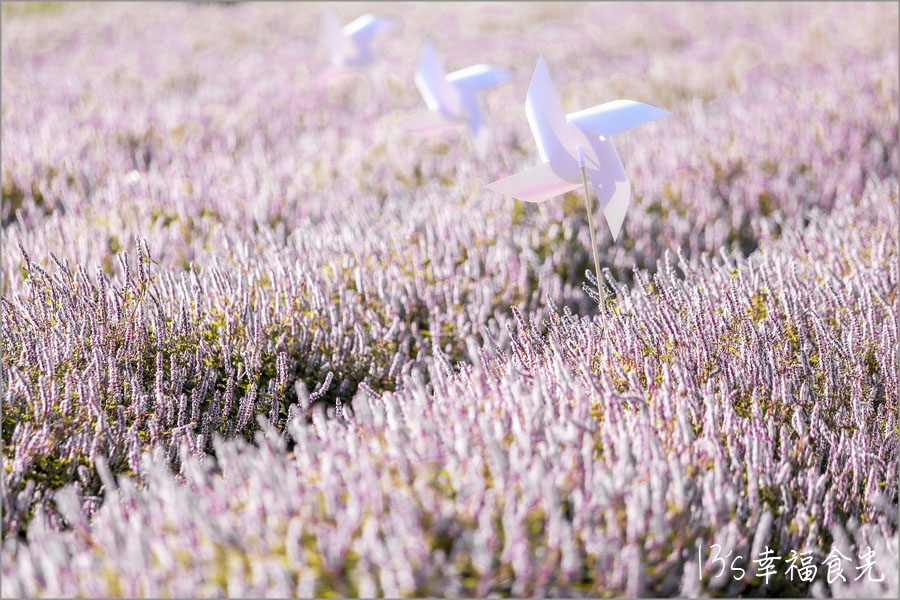 ▼紫色花海中點綴著白色風車,風車隨著清風轉動,有浪漫也有童趣。