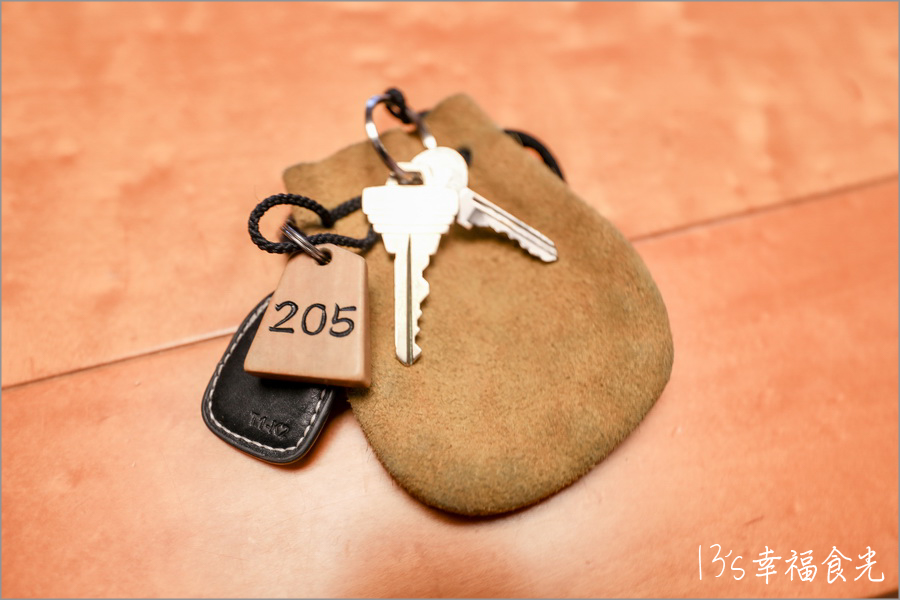 ▼房間門鎖用的是傳統鑰匙上鎖,另一支鑰匙是保險箱用。可以看見房號的鑰匙圈是很可愛的將棋裝飾品,還有個皮革小袋子。