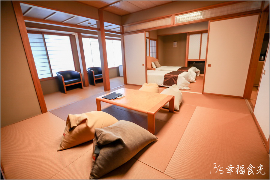 房型內部空間相當寬敞,是我最愛的榻榻米房,格局空間有劃分出客廳、臥房、辦公閱讀、浴室和廁所等,裡面充滿浪漫的日式風情,讓人一進來就覺得非常放鬆。而且這間房型最多可以6人入住,很適合親子家庭或三五好友一起出遊來住。