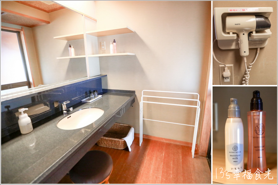 ▼提供壁掛式吹風機,房內沒有備品,可以在大廳旁邊的「浴衣間」免費拿取毛巾和一次性牙刷,其他需求就得詢問櫃台了。