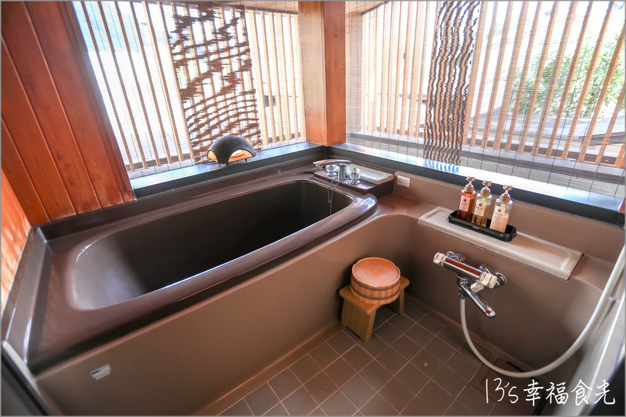 ▼泡澡的地方是個半戶外空間,隱私性也蠻好的,完全不用擔心。在房間內有浴缸可以泡澡就是讚,但要提醒一下,房間內的熱水並不是溫泉水喔,只是一般熱水;想泡溫泉,還是得前往大浴場,或預約付費制的私人湯屋。