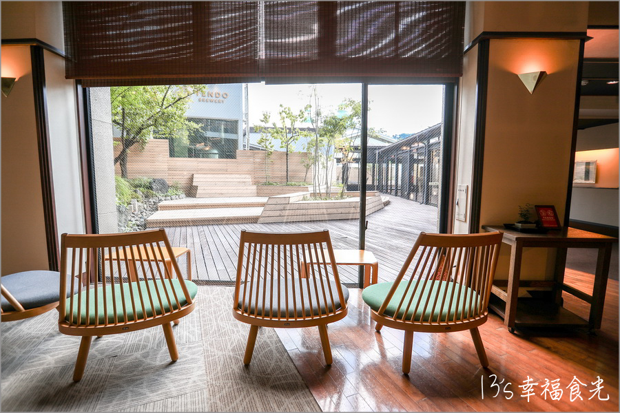 ▼透過休憩區的玻璃窗,還能看見一樂溫泉旅館的自家啤酒廠。