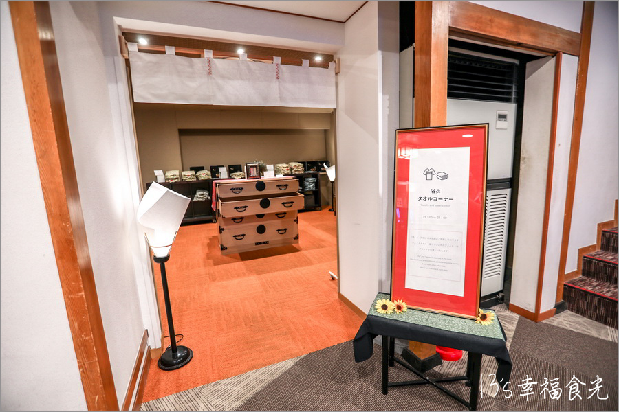浴衣間位置就在大廳往2樓餐廳旁的一個小房間內,剛剛在房間內已經先看過只有外衣和腰帶,浴衣的部份則要來這個「浴衣間」拿取,一般都是帶著腰帶下來,然後拿了浴衣後,直接就往大浴場泡湯去了。