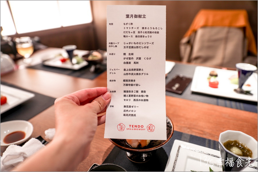 晚餐與早餐的用餐地點位於2樓(大廳之上),真的很推薦一泊二食方案,因為這裡的晚餐也很豐富厲害。如果自助吧的精釀啤酒喝的不夠過癮,那麼晚餐一定會讓你喝的更加開心,晚餐一樣有提供酒類無限暢飲,而且是加入山形在地所產的清酒、梅酒及紅白酒等等,感覺入住一晚之後,我的血液裡的酒精濃度一定大飆升,但真的可以喝的很痛快又開心。