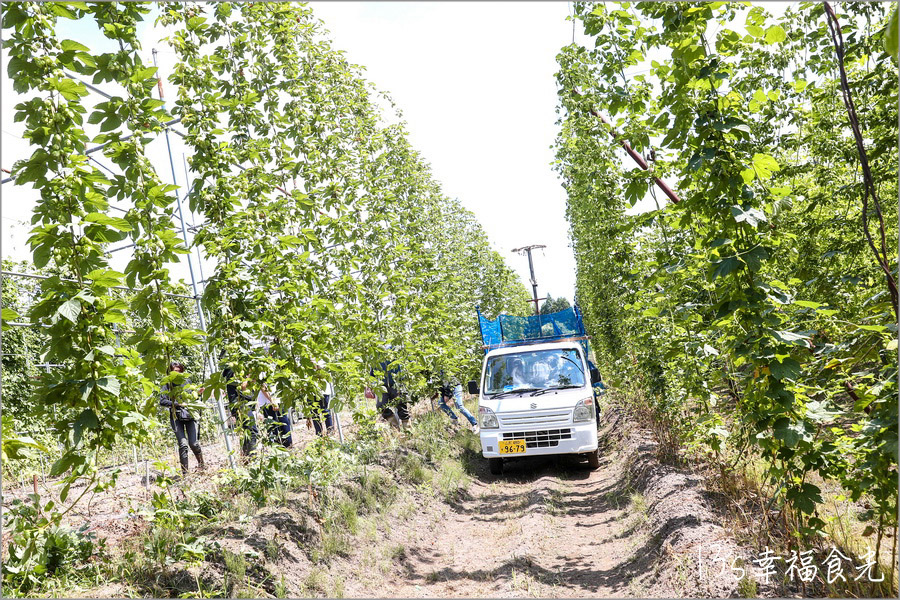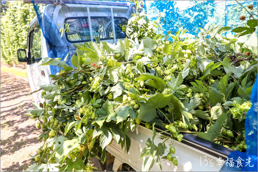 一日偽農婦來採摘啤酒花體驗,採完直接就在花樹下享用美味午餐&品嚐精釀啤酒,這是這次來到天童溫泉 一樂湯坊いちらく參加的特別體驗行程之一,類似品酒會活動,從採摘啤酒花再到啤酒後段的製造過程一一體驗。