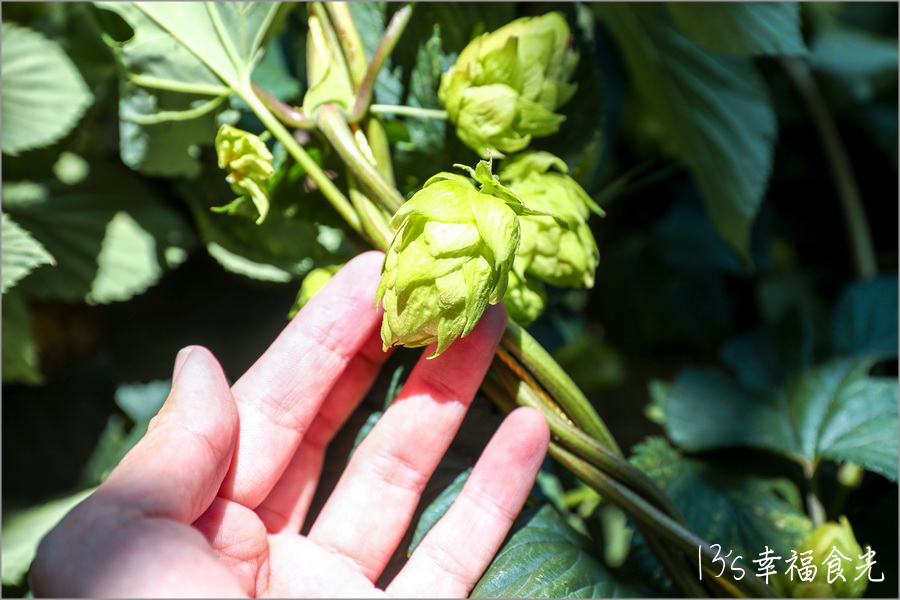 ▼原來啤酒花的植株類似攀藤植物,會利用其粗壯的莖以及上頭的硬毛來攀爬,高度足足有兩層樓高,走進農場裡特別像是身在高牆迷宮之中,感覺奇妙又充滿趣味。