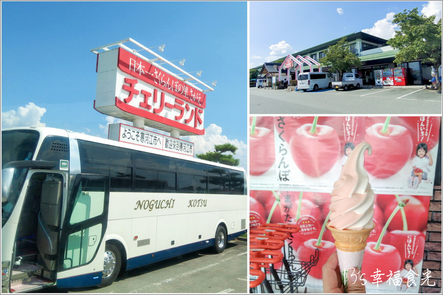 體驗完畢後,搭著專車準備回去天童湯坊一樂溫泉旅遊,途中特別安排這個「道の駅 寒河江 チェリーランド」還讓我們下車採買伴手禮。看見山形有名的櫻桃冰淇淋先來一支再說,吃起來香香甜甜,奶味很香濃,還有淡淡櫻桃香氣,很好吃欸!
