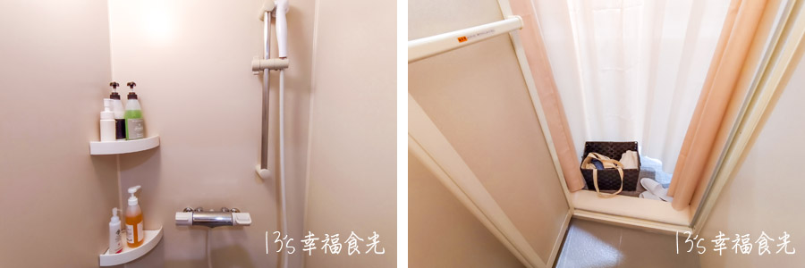 ▼淋浴室比較特別的是,因為不是乾溼分離,所以衣物毛巾都要放在門外,但有拉簾可以拉上;所以在洗澡時別忘了把浴簾拉上,再關拉門。(大家看見浴簾拉上就會知道裡面有人在洗澡了)