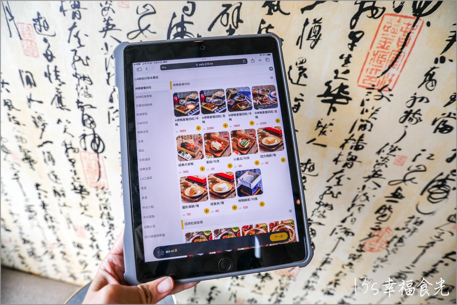 入座後,服務人員除了送上菜單本外,還拿了一台可點餐的ipad;在LA時尚川菜是直接用電子菜單來點餐相當方便,服務人員也會簡單的先作菜品介紹,還有辣度的部份,也都有稍作區隔,像是熱炒類就偏大辣,涼菜類則是小辣,對於喜歡吃辣或不吃辣都能被滿足。(文末提供紙本菜單分享)