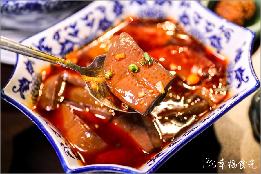 看見菜單上有幾道辣辣紅紅的主廚滷品,也引起我的高度興趣,點了滷肥腸和鴨血,滷品上標示的都是小辣,但實際吃起來對於愛吃辣的人而言,會覺得完全不辣喔!