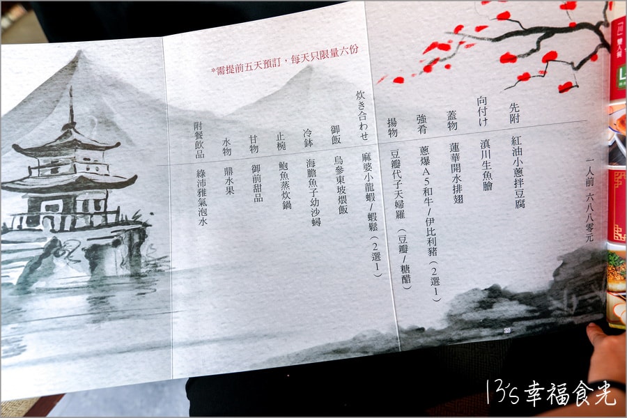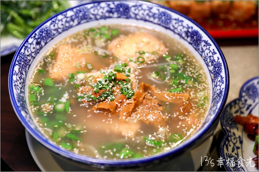後來問了服務人員才知道湯底裡放了泡野山椒和馬告,吃起來香辣又帶酸,而且馬告的味道也特別凸出,如果吃過泰國火山排骨,大概就能了解是什麼程度的辣味。裡面放了海脆與老豆腐,相當特別的組合,口味上也讓我留下深刻印象。