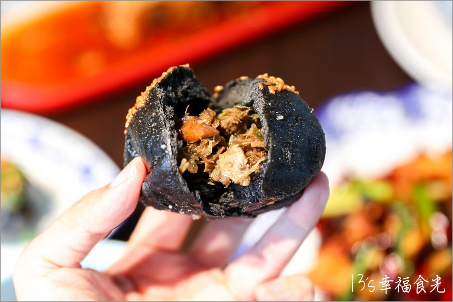 這個火山熔岩鴨肉包感覺是的烤鴨胡椒餅升級版,但口味是完全不一樣的喔!看似火山熔岩的外觀其實就是與麻婆豆腐的創意結合,吃起來甜甜辣辣,口味層次非常豐富,記得一定要趁熱吃,會更加美味。