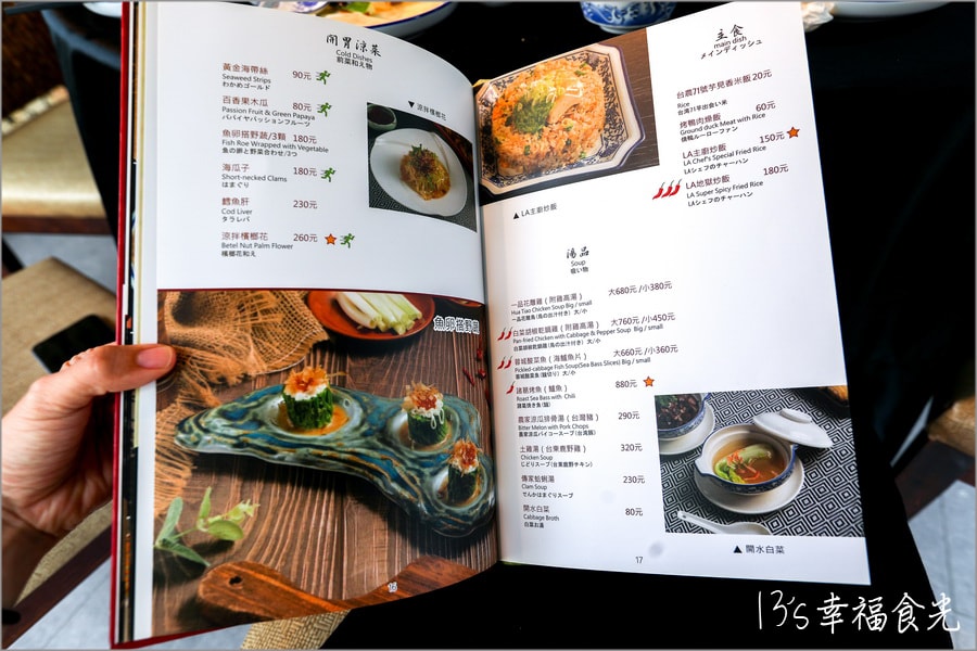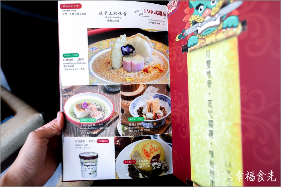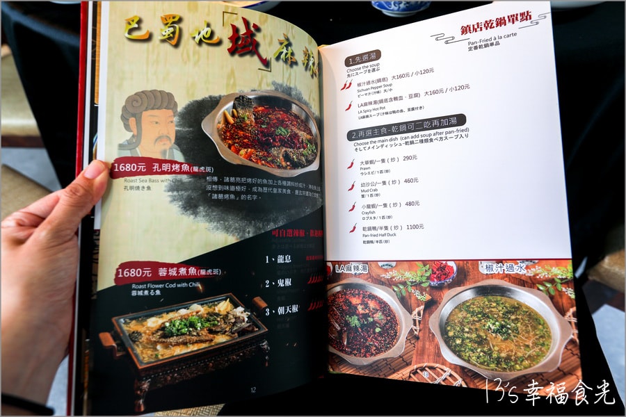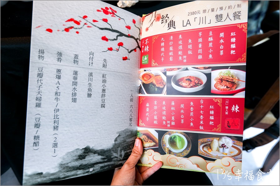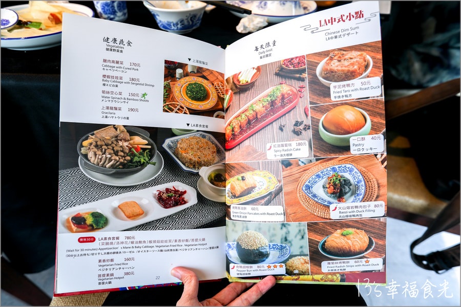 LA時尚川菜菜品類別非常多樣,可以吃到烤鴨套餐、經典火鍋、招牌乾鍋套餐、LA涼菜、主食、經典名菜、LA江湖、青菜、滷味、湯品、中式小點、中式甜點和素食等各式美味川菜料理,另有經典套餐及LA時尚套餐。